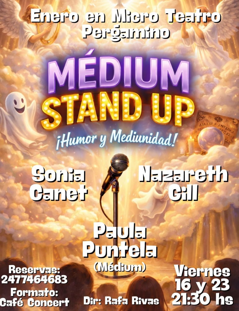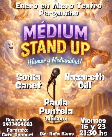 Te invitamos a vivir una experiencia ÚNICA de stand up, humor y mediunidad, donde las risas se mezclan con lo paranormal en un formato íntimo de café concert.